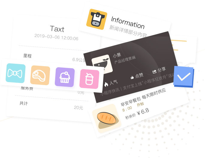 用戶可自定義模板組,40+模塊組合,打造個性小程序上傳云端獲取收益